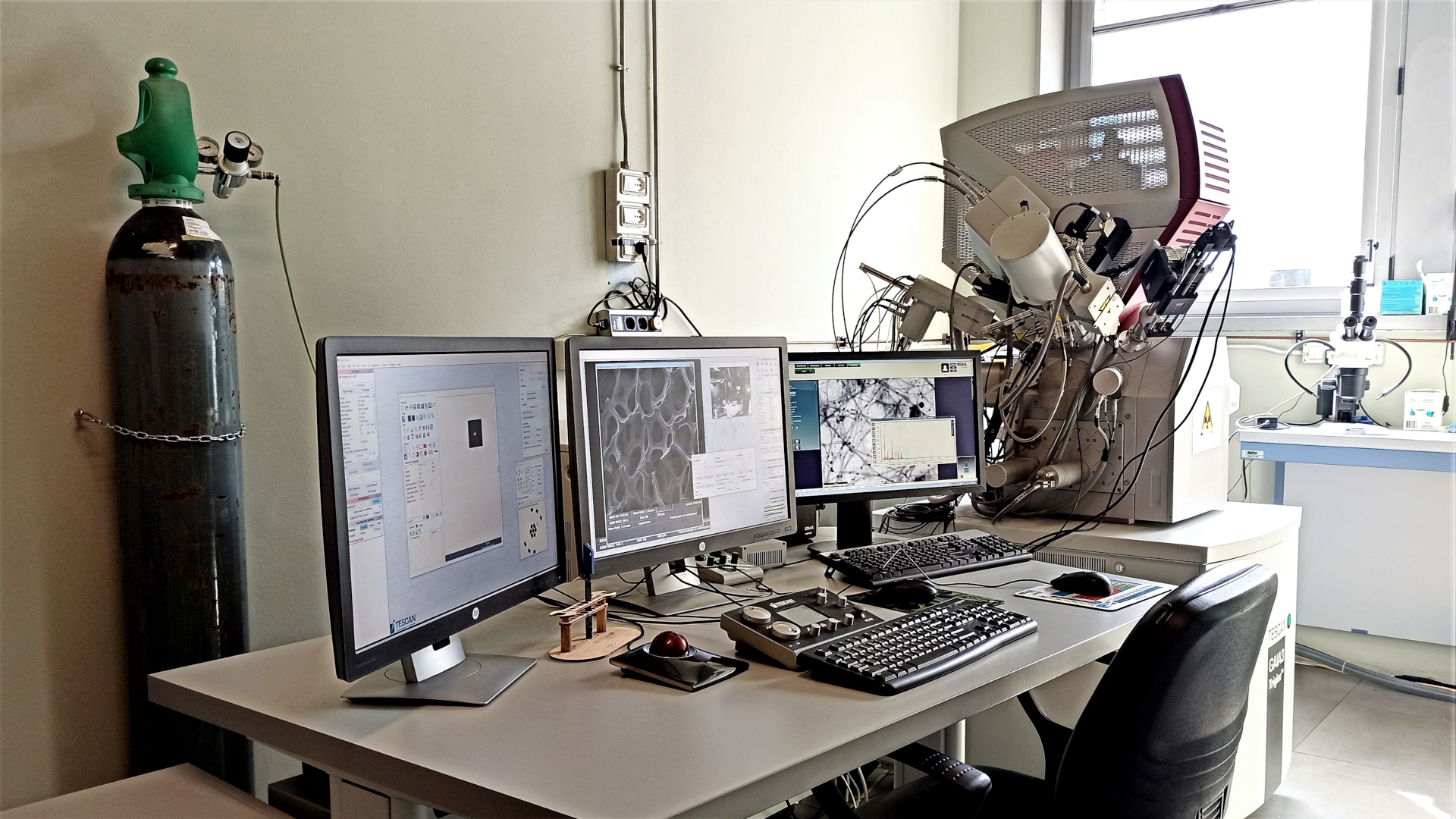 Tescan Gaia 3 is use a versatile instrument for analysis (EDS) and characterization (SEM-STEM) using electron microscopy techniques on samples of various kinds: materials, metallurgy, coatings, renewable energy, life sciences, cultural heritage, agri-food. Metrological investigations. Micro & Nano processing of surfaces by ion beam (FIB).