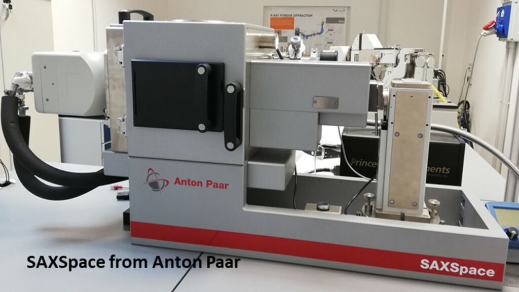 The investigated sample is irradiated with a monochromatic radiation, and scattered X-rays are typically collected in an angular range of 0 – 10° by a suitables (ie. CCD or imaging plate) and up to 60° (by using an imaging plate for the systems coupling SAXS and Wide Angle X-Ray Scattering, WAXS). Samples can be measured under various conditions, like at different temperature, humidity, high pressure and under mechanical stress/strain conditions. Special features: – TrueFocus: self-alignment with X-ray beam; – TrueSWAXS: simultaneous SWAXS studies up to 60° 2Ѳ; – StageMaster: YZ stage with auto-recognition of sample stages. Accessible q range 0.03 nm-1 to 40.7 nm-1, 200 nm > d > 0.15 nm. System resolution qmin: 0.03 nm-1.