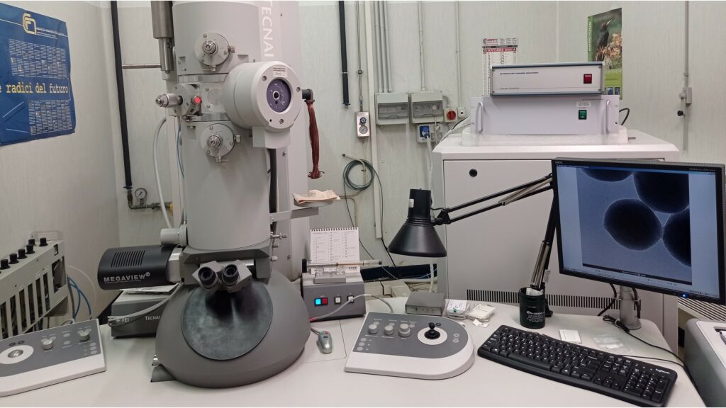 The TEM FEI is very useful for the morphological and structural characterization of inorganic, organic and biological materials in bright field mode. Crio-ultramicrotomy for the preparation of ultrathin sections for TEM observations is also available.