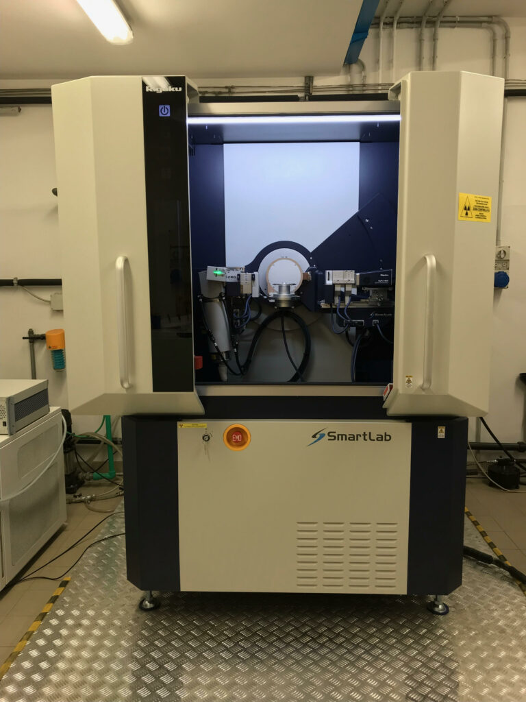 Rigaku SmartLab SE is an X-ray powder diffractometer for crystalline powders and thin films. It is equipped with automatic alignment and a chamber for performing experiments under non- ambient experiments. Powder X-ray diffraction patterns under inert conditions up to 1 bar or under vacuum in the temperature range between 220 K to 500 K can be carried out.
